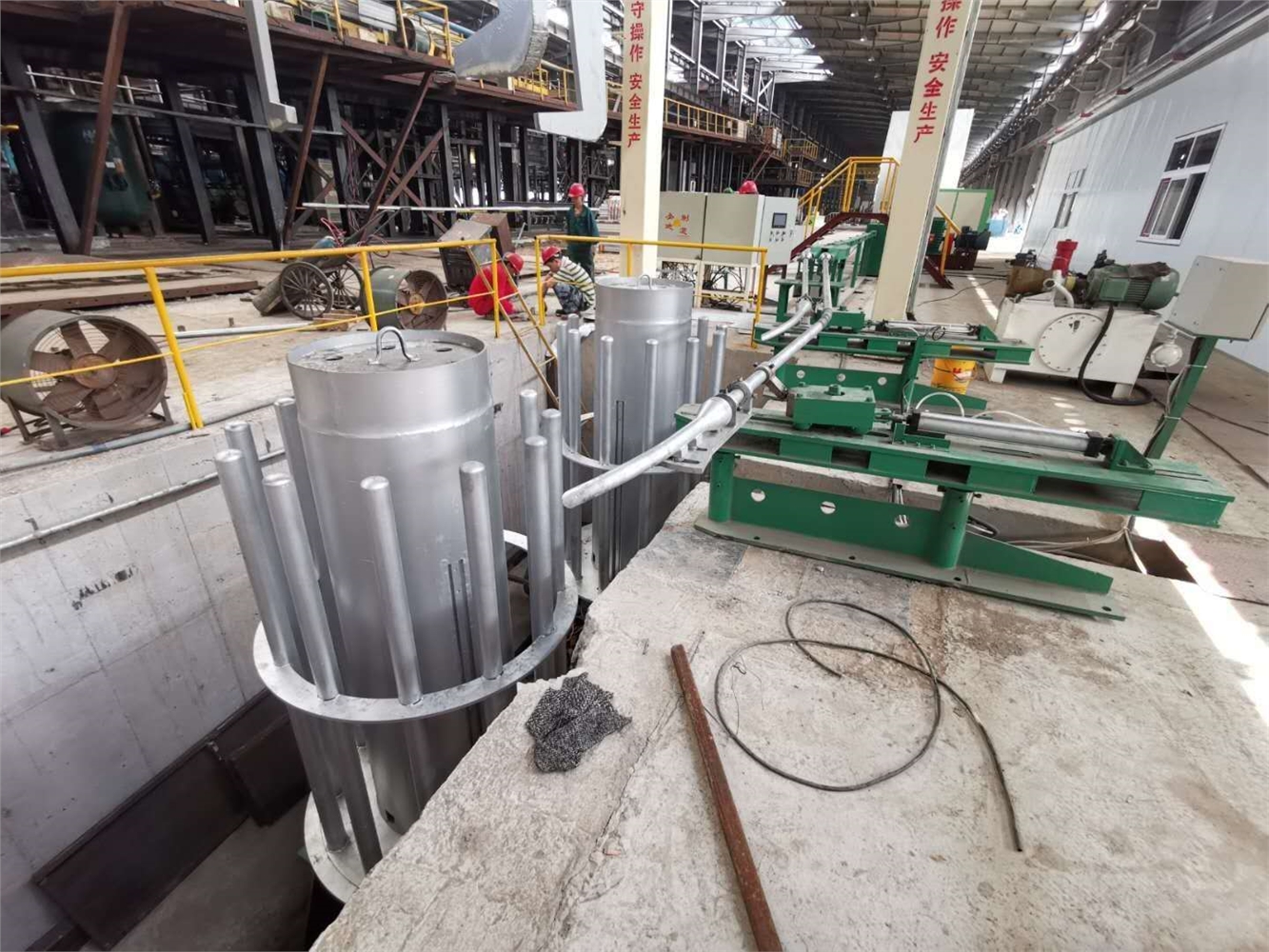 第六代高延性冷軋帶肋鋼筋生產(chǎn)線分高、中、低速。高速生產(chǎn)線600-1000米/分,單機(jī)年產(chǎn)高強(qiáng)鋼筋10萬噸以上。整套高強(qiáng)鋼筋生產(chǎn)線全部完成自動上料、產(chǎn)品軋制、在線熱處理、在線性能控制、在線質(zhì)量檢測、在線自動剪切等,全線遠(yuǎn)程監(jiān)控,智能操作。